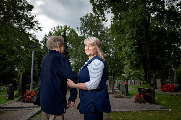 Kun hoivapalveluyrittäjä Sari Ruohonen ja vantaalainen Eila-rouva kävelevät kirkolta Eilan puolison haudalle, ajassa mennään sopivalla tavalla taaksepäin.