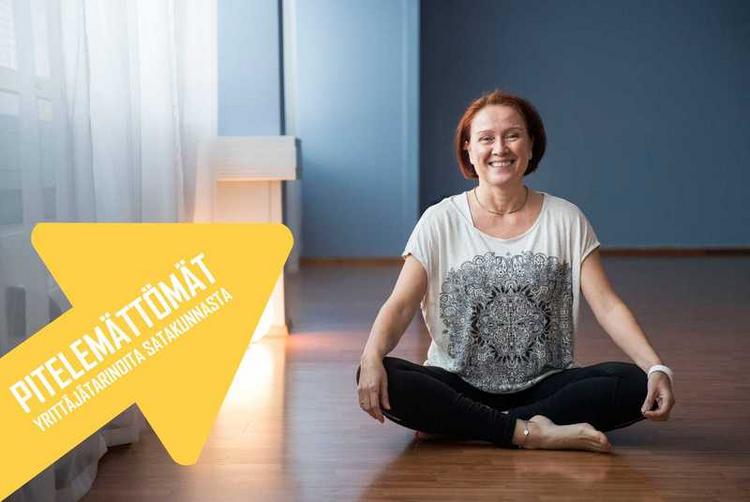 Hyvinvointicenter on vireä 20 hengen yrittäjäyhteisö, jossa Mirja vetää joogaa täysille saleille ja suunnittelee taas uutta laajennusta.