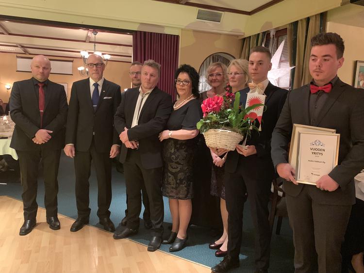 Ylitornion Yrittäjät palkitsivat vuoden 2018 yrittäjäksi ylitorniolaisyrittäjä Jouko Vakkurin (kolmas vas.). Kuvassa vasemmalta: Kunnanhallituksen puheenjohtaja ja maatalousyrittäjä Markku Kangas, Ylitornion kunnanjohtaja Tapani Melaluoto, Ylitornion Yrittäjien sihteeri ja Lovikka ky:n yrittäjä Pekka Lovikka, Jouko Vakkuri Oy:n yrittäjä Jouko Vakkuri ja puolisonsa Vuokko Vakkuri, kunnanvaltuuston puheenjohtaja Reeta Laitinen, Ylitornion Yrittäjien puheenjohtaja ja Systaylor Oy:n yrittäjä Mirja Heinonen sekä Jouko ja Vuokko Vakkurin pojat Jakob ja Josef Vakkuri.
