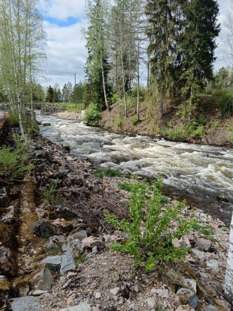 Tutustuminen Kangaskosken ennallistettuun koskeen ja virtuaalipolkuun