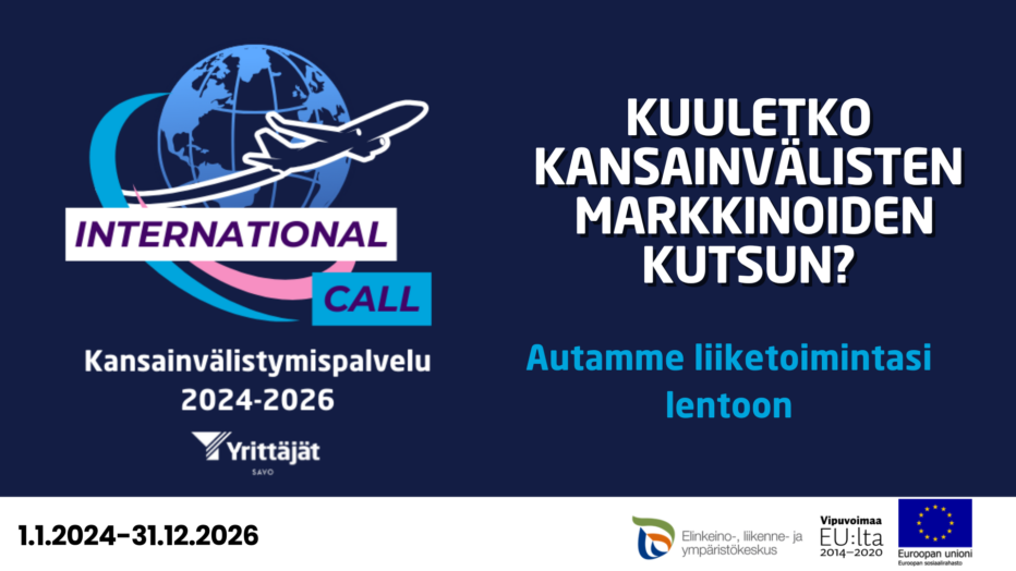 Savon Yrittäjien uusi palvelu vie pohjoissavolaisia yrityksiä Pohjois-Ruotsin ja Puolan markkinoille sekä lähelle Ukrainan jälleenrakennusta. -International Call-hanke on uusi aluevaltaus Savon Yrittäjien toiminnassa, kertoo toimitusjohtaja Paula Aikio-Tallgren. -Kolmivuotisella ESR-rahoituksella pystymme auttamaan noin 60 pk-yritystä kansainvälisille markkinoille. Mukaan on jo nyt ilmoittautunut kymmenkunta yritystä.