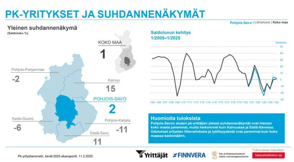 Tutkimuksen on toteuttanut Taloustutkimus Oy Suomen Yrittäjien, Finnvera Oyj:n sekä työ- ja elinkeinoministeriön toimeksiannosta. Vastaajia oli 4553 ja Pohjois-Savosta 181 yritystä. Vastausaika oli joulukuusta 2024 tammikuuhun 2025. Tutkimustuloksissa aineisto on painotettu vastaamaan yritysten todellista toimiala- ja aluejakaumaa. Vastaajien toimialat: palvelut 56 % – Kauppa 13 % – Rakentaminen 18 % – Teollisuus 13 %