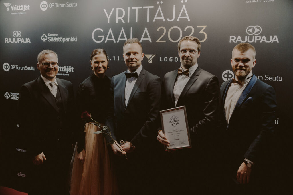 Turun Yrittäjien esityksestä on vuoden 2023 yritykseksi Turussa valittu Jalo & Jalo. ”Olemme saaneet ihaillen seurata perheyrityksen kasvua ja kehitystä. Jalo & Jalo on hyvä esimerkki paitsi hallitusta kasvusta, myös onnistuneesta sukupolvenvaihdoksesta. Sellaisia toivoisimme näkevämme Turun seudulla lähivuosina yhä enemmän.” kommentoi Turun Yrittäjien toiminnanjohtaja Tuulia Merivuori-Marisa. Palkinnon perheen nuorelle polvelle eli toimitusjohtaja Sami Jalolle ja talousjohtaja Toni Jalolle luovuttivat Turun Yrittäjien puheenjohtaja Mikko Rantanen, Turun pormestari Minna Arve ja Turun elinvoimajohtaja Niko Kyynäräinen. Sami ja Toni olivat saapuneet Varsinais-Suomen yrittäjägaalaan puolisoidensa kanssa.