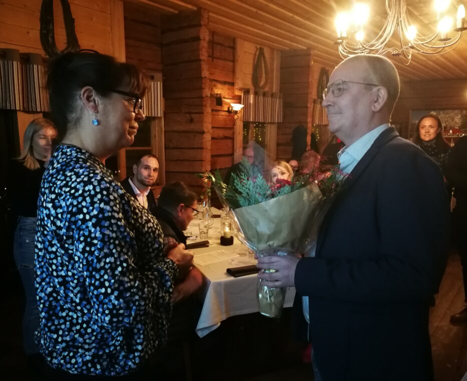 Neljä vuotta Kuopion Yrittäjien puheenjohtajana toiminut Sirpa Karppi onnitteli 25.11. syyskokouksessa kaksivuotiskaudelle valittua uutta puheenjohtajaa Janne Seppälää.