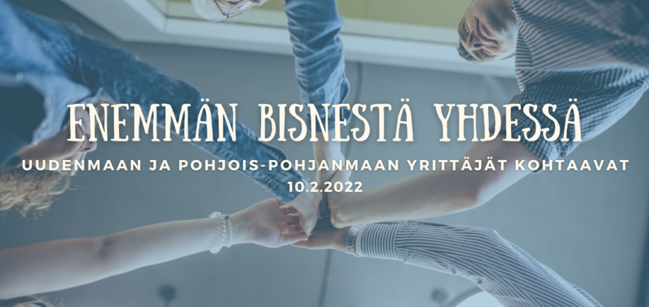 Seikkaile mukaan seuraaville Pohjois-Pohjanmaan ja Uudenmaan Yrittäjien yhteisille yritystreffeille 10.2. Ilmoittautumaan pääset tästä.
