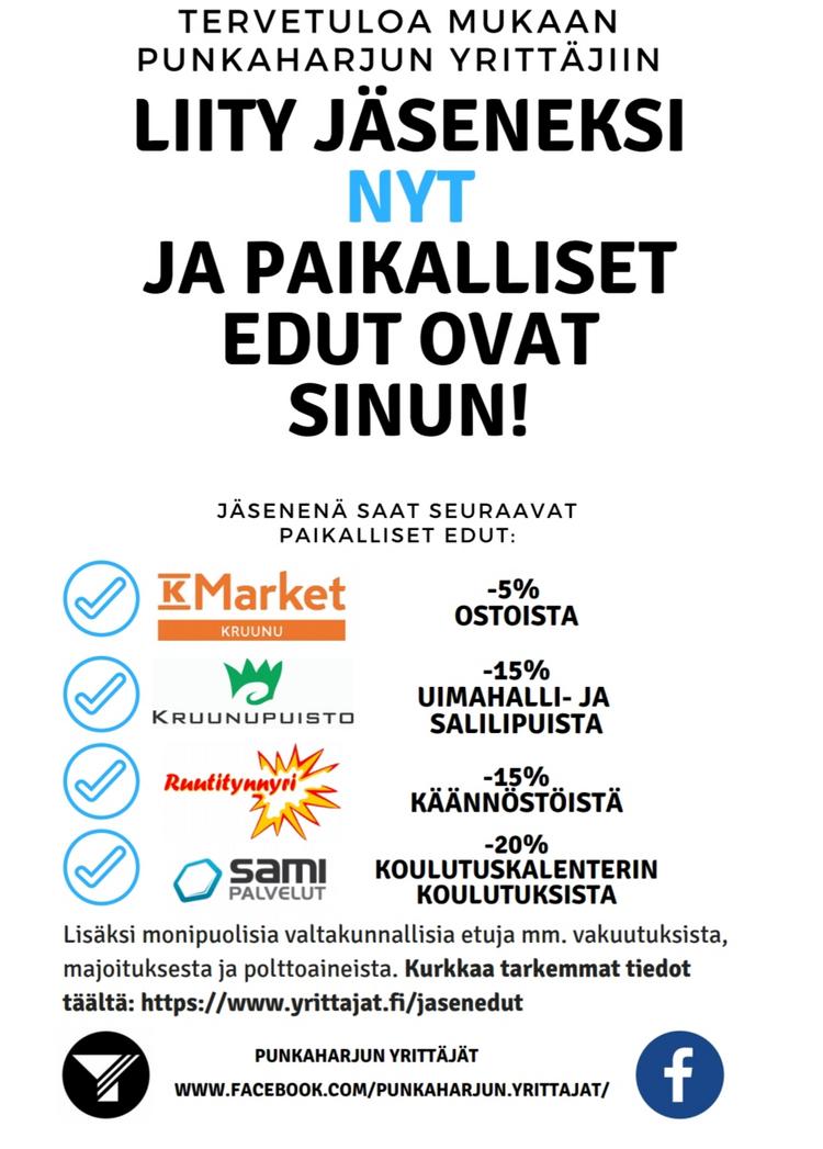 Etelä-Savon yrittäjien jäsenenä saat seuraavat edut Punkaharjulaisissa jäsenliikkeissä: