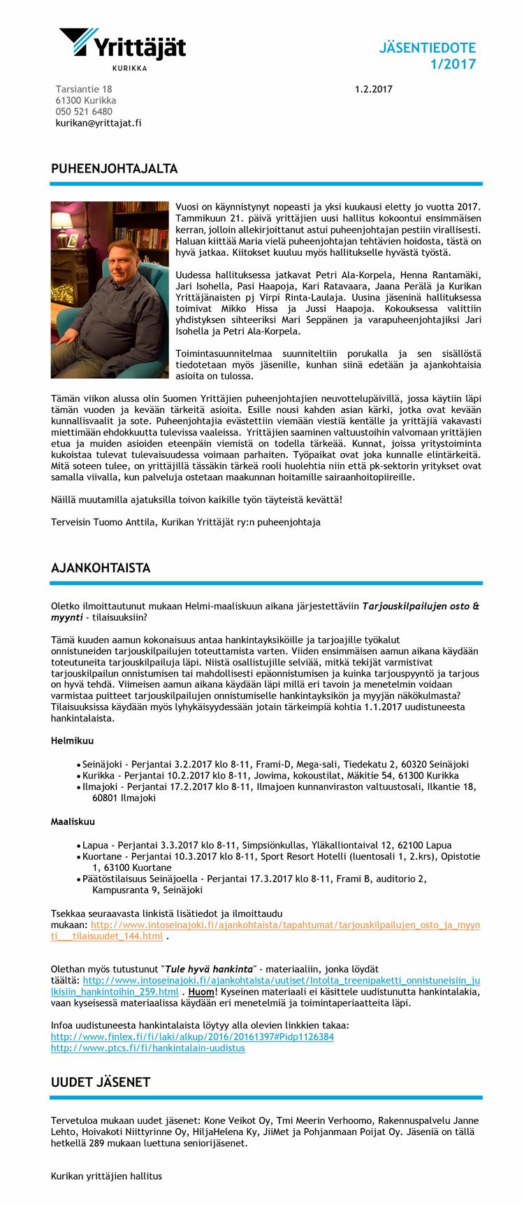 6.2.2017 klo 16:29 Uutinen #järjestö Jäsentiedote 1/2017 Tämä teksti on konekäännetty. Vuoden ensimmäinen jäsentiedotteemme. Jaa Kopioitu leikepöydälle