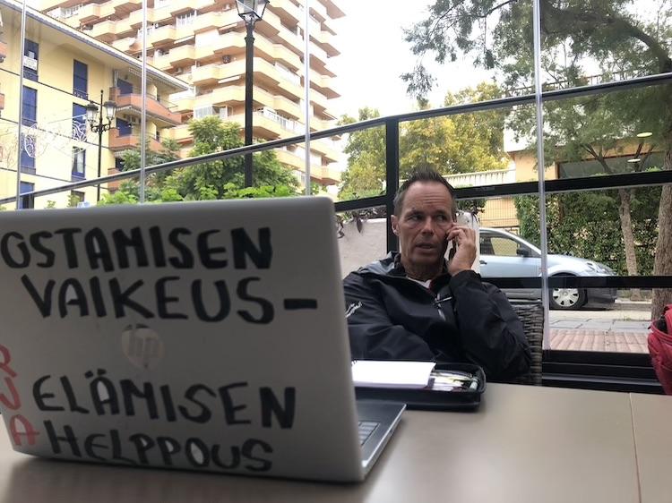 Juha Päivärinta istuu joka-aamuiseen tapaansa Fuengirolan rantabulevardin ravintolassa. Hän ei ole aikoihin tehnyt itse aamiaista, koska sen saa alle viidellä eurolla valmiiksi pöytään tuotuna.