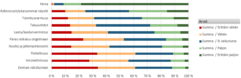 Ote kyselystä: Miten arvioitte hankintayksiköiden painottavan julkisten hankintojen kilpailutuksessa seuraavia tekijöitä?