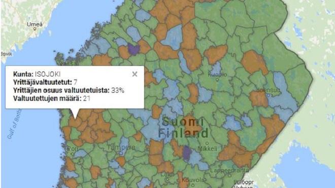 Suomesta löytyy kolme kuntaa, joissa kaikki kuntavaaleissa ehdolla olleet yrittäjät valittiin valtuustoon.