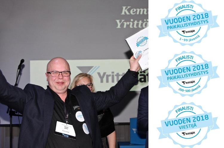 Kuva: Viime vuonna Kemin Yrittäjät palkittiin vuoden 2017 parhaana paikallisyhdistyksenä alle 500 jäsenyhdistyksen sarjassa