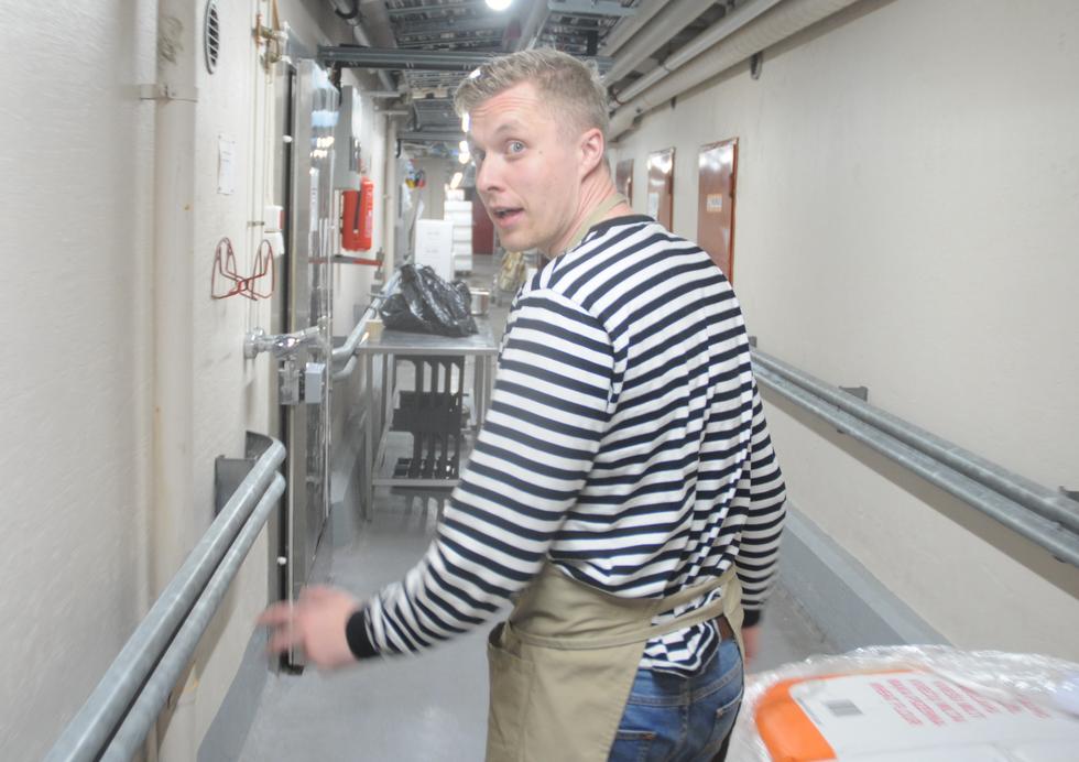 – Meillä on kylmiöitä toisessa päässä hallia ja keittiö taas toisessa, hän esittelee.