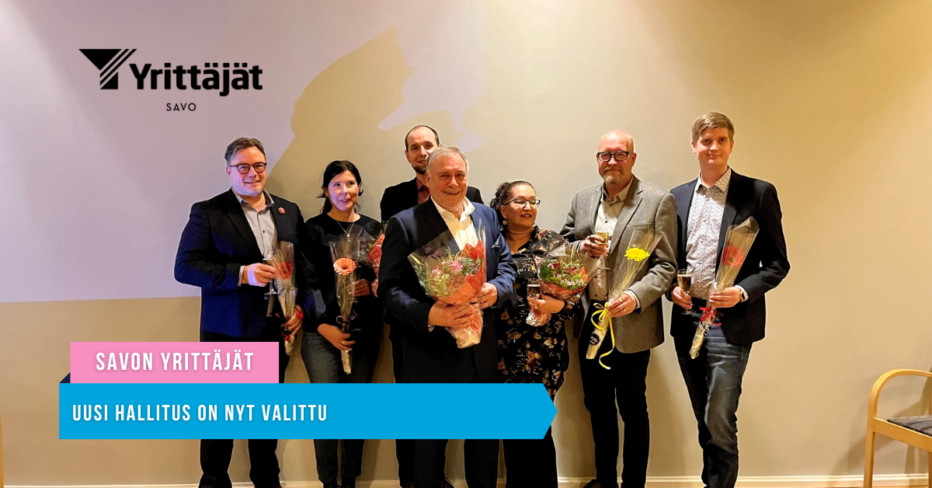 Syyskokouksessa valittiin myös Savon Yrittäjien hallituksen erovuoroisten tilalle. Uusina valittiin Minna Asikainen (Varkauden Yrittäjät), Aki Karkulahti (Kuopion Yrittäjät), Sari Mielonen (Kuopion Yrittäjät) ja Harri Piipponen (Iisalmen Yrittäjät). Hallituksessa entisinä jäseninä jatkavat Joel Jokelainen (Sonkajärven Yrittäjät) ja Petteri Virranta (Siilinjärven Yrittäjät).