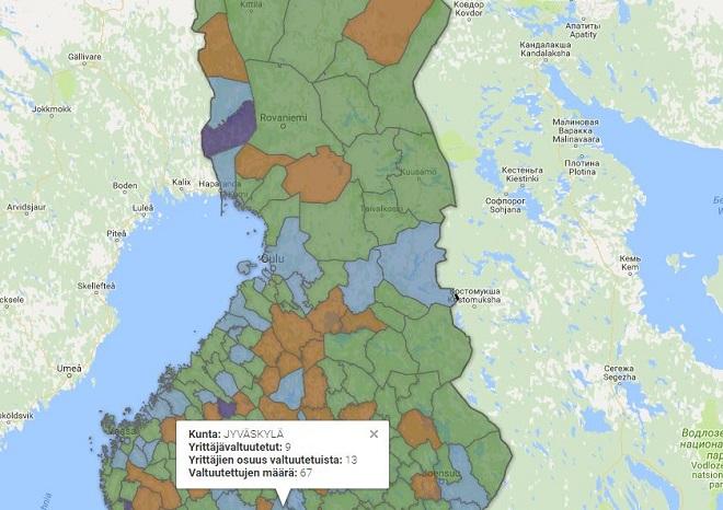 Katso kartalta kuntasi yrittäjävaltuutettujen osuus