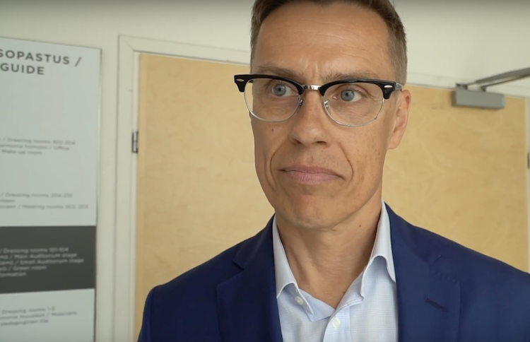 Stubb ei anna haastatteluja Suomessa, mutta suostui yllättäen kameran eteen hetkeä ennen astumistaan Tampere-talon lavalle.