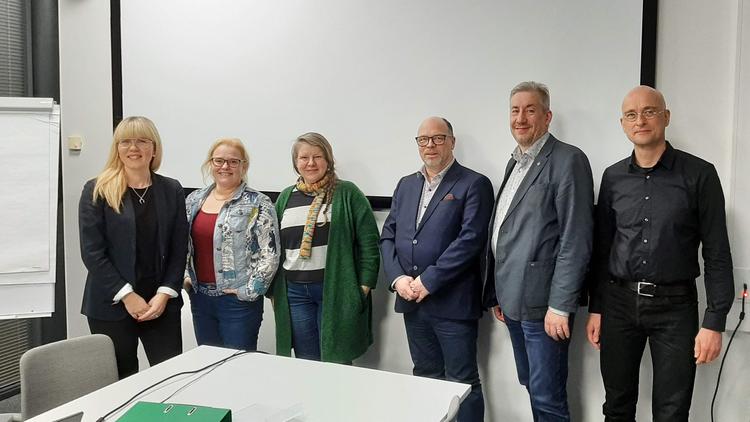 Anastasia Kanervisto (vas), Mia Laurila, Minna Takala, Marco Hautakoski, Hannu-Heikki Saarinen ja Marko Mälly luotsaavat hämäläisellä kehittämishankeella yrityksiä kv-markkinoille: kuva Juha Haukka