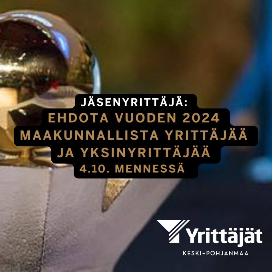 Ehdotukset tulee lähettää 4.10.2024 mennessä – älä jätä tätä tilaisuutta käyttämättä, vaikuta nyt ja anna tunnustusta alueemme ansioituneille yrittäjille!