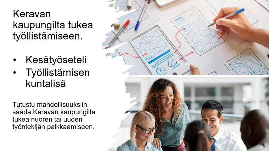 Tutustu mahdollisuuksiin saada Keravan kaupungilta tukea nuoren tai uuden työntekijän palkkaamiseen