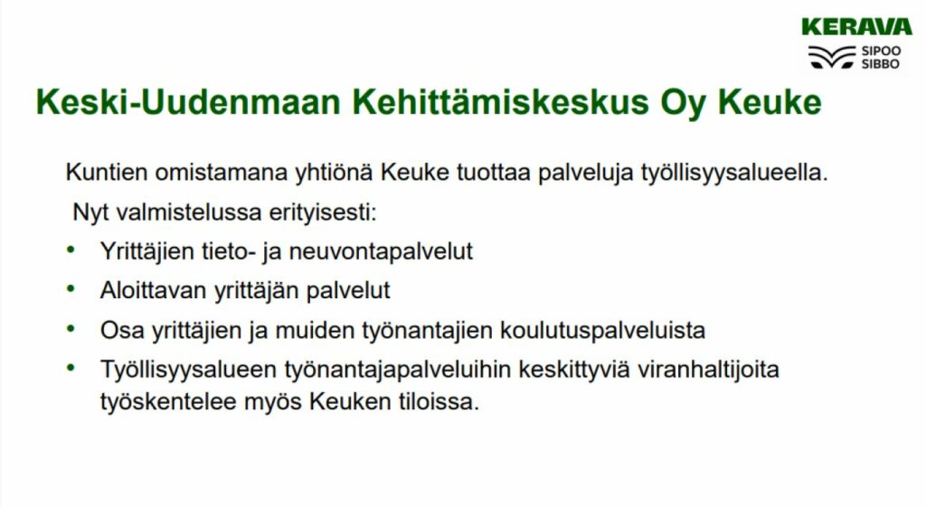 Kuulimme tiiviissä paketissa, miten Keravan ja Sipoon työllisuusalueen rakentaminen etenee hyvässä yhteistyössä.