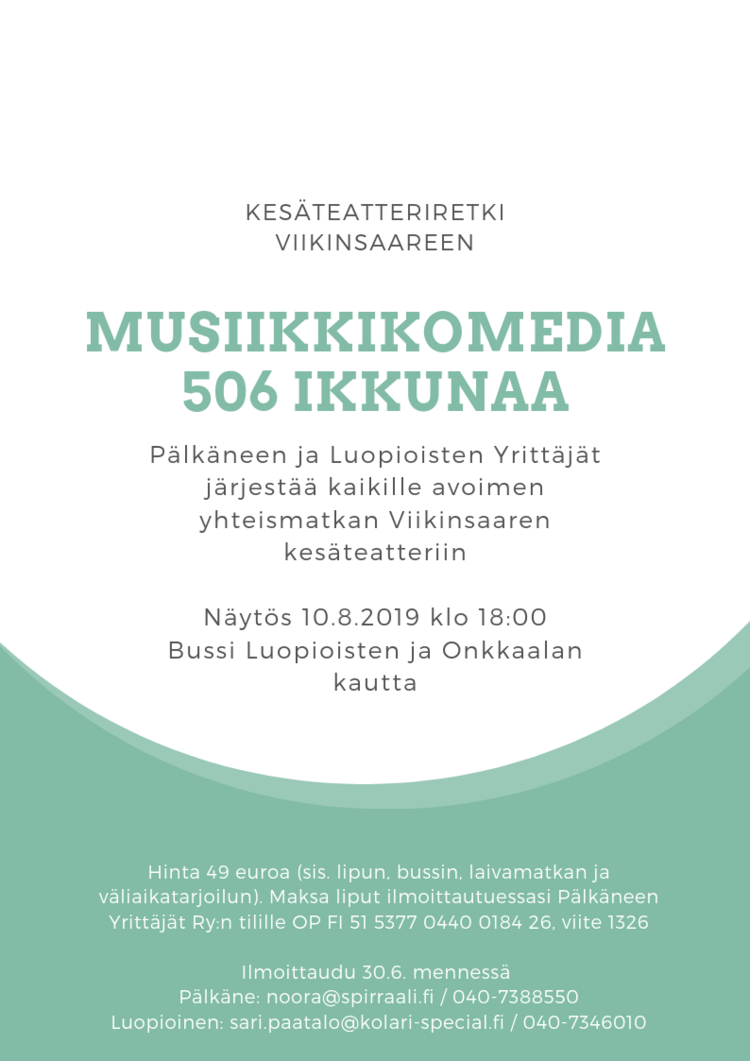 Pälkäneen ja Luopioisten Yrittäjät järjestää kaikille avoimen yhteismatkan Viikinsaaren kesäteatteriin katsomaan musiikkikomediaa ”506 ikkunaa”