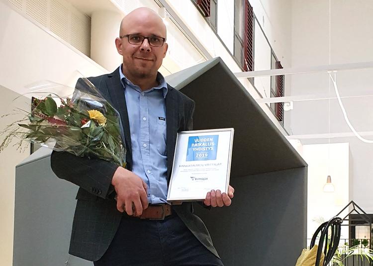 – Palkinto on hyvän yhteistyön tulosta ja kiitos siitä kuuluu koko verkostollemme, kertoo neljä vuotta Hankasalmen Yrittäjien puheenjohtajana toiminut Simo Aitto-oja.