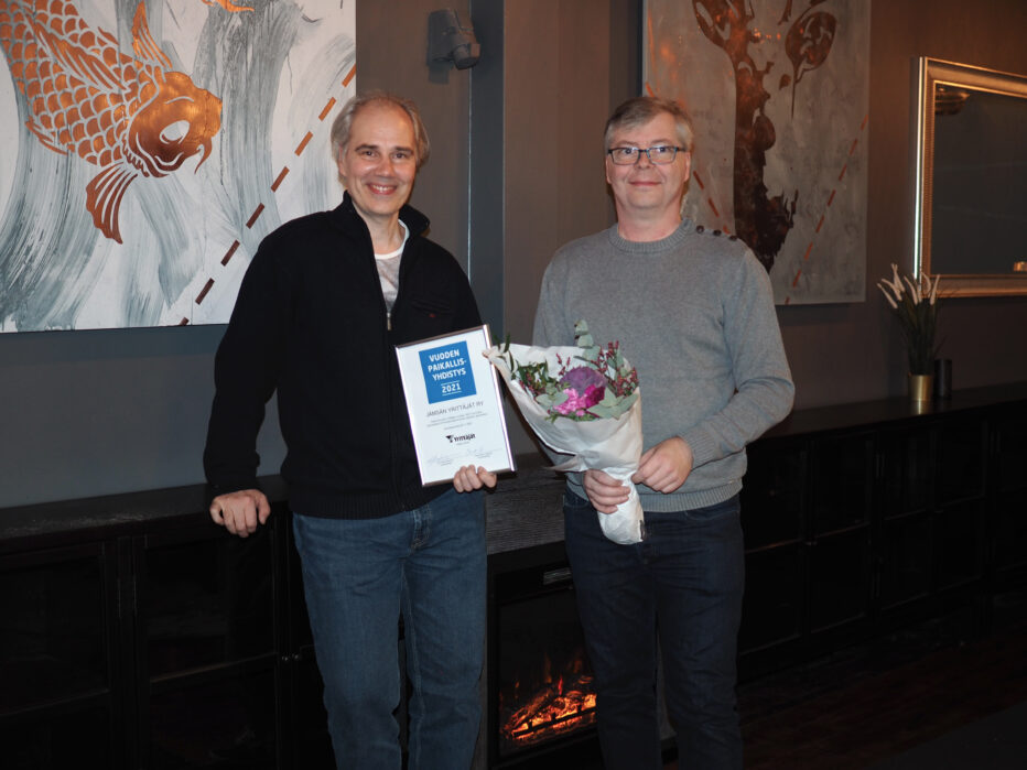 Keski-Suomen Yrittäjät palkitsi Jämsän Yrittäjät Vuoden 2021 paikallisyhdistyksenä. Tunnustus aktiivisesta toiminnasta jäsenkunnan asioiden ajamiseksi ojennettiin yhdistyksen puheenjohtajalle Pasi Pohjoismäelle ja hallituksen jäsen Jorma Saloselle Keski-Suomen Yrittäjien syyskokouksessa 25.11.