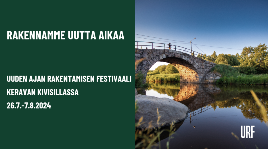 Ensi kesänä Keravan Kivisillassa järjestetään 26.7.-7.8.24 Uuden ajan rakentamisen festivaali, URF, joka on uudenlainen ja ainutlaatuinen kaupunkifestivaali. Tapahtuman painopisteinä ovat muun muassa kestävä rakentaminen, asuminen ja elämäntapa.