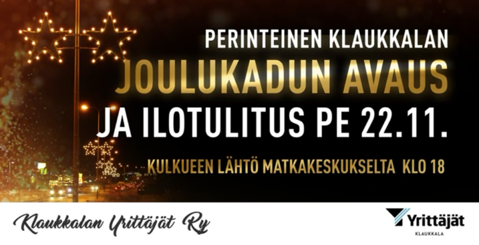 Klaukkalan yrittäjien valaisema joulukatu ja sen avajaiskulkue joulupukkeineen ja ilotulituksineenhan on jo vanha perinne, alkaen vuodesta 1994.