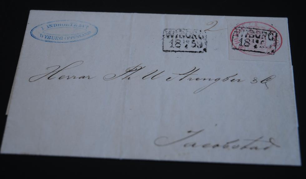 SIINÄ ON lähetyksellä ikää. Leima paljastaa, että kirje on lähetetty Viipurista 1859.