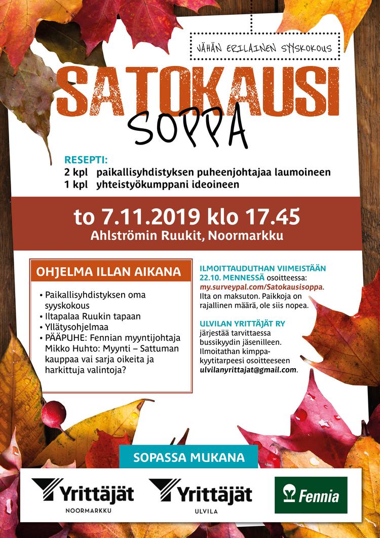 Tervetuloa siis kaikki Ulvilan ja Noormarkun Yrittäjien jäsenet yhteiseen syyskokous- / illanvietto- / verkostoitumis- sekä myynti-iltamaan.