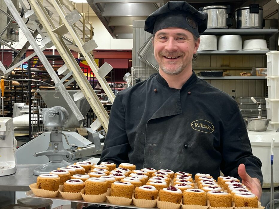 Konditoria R. Kokko on perheyritys, ja toimitusjohtaja Kaarle Kokko osallistuu itsekin runebergintorttujen valmistamiseen.