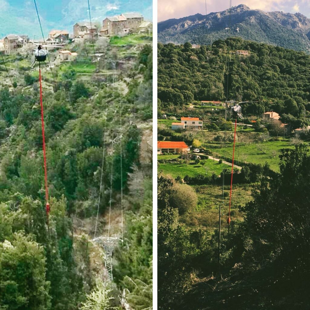 Heliwestin kopterilentäjät katkovat oksia ja puiden latvoja sähkölinjojen tieltä, jotta puut eivät pääse vahingoittamaan linjoja ja katkaisemaan sähköjä asutuskeskuksista.