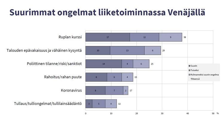 Koronakriisin ja öljyn hintasodan heikentämä rupla on noussut jälleen suurimmaksi ongelmaksi viennissä ja liiketoiminnassa Venäjällä. Myös talouden epävakaisuus ja poliittinen tilanne ovat edelleen ongelmien kärjessä.