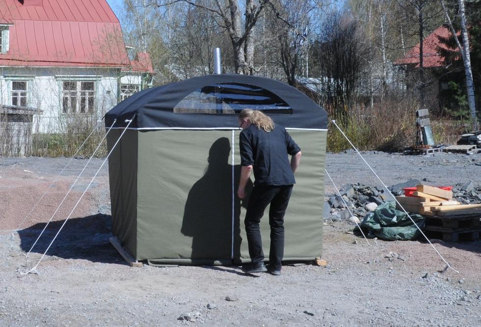 Oriveteläinen telttasauna valmistui juuri sopivasti kesän alla