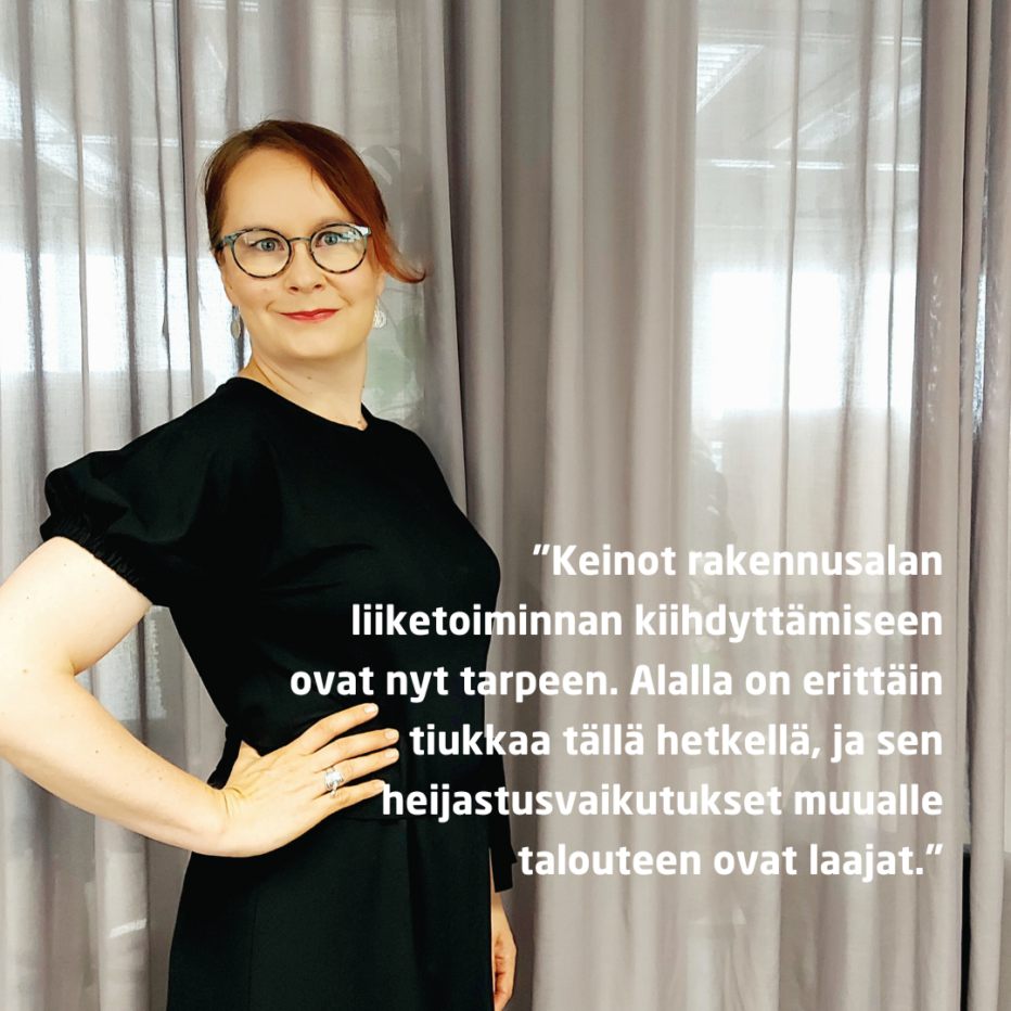 Keinot rakennusalan liiketoiminnan kiihdyttämiseen ovat nyt tarpeen. Alalla on erittäin tiukkaa tällä hetkellä, ja sen heijastusvaikutukset muualle talouteen ovat laajat. Rakennusalan yrityksistä joka toinen arvioi, että vähennyksen laajentaminen hyödyttäisi yritystä. Lisäksi on selvää, että suomalaisissa kodeissa on runsaasti korjausvelkaa monin eri mittarein laskettuna. Kotitalousvähennystä käytetäänkin ylivoimaisesti eniten kunnossapito- ja perusparannustöihin joko kotona tai vapaa-ajan asunnolla.