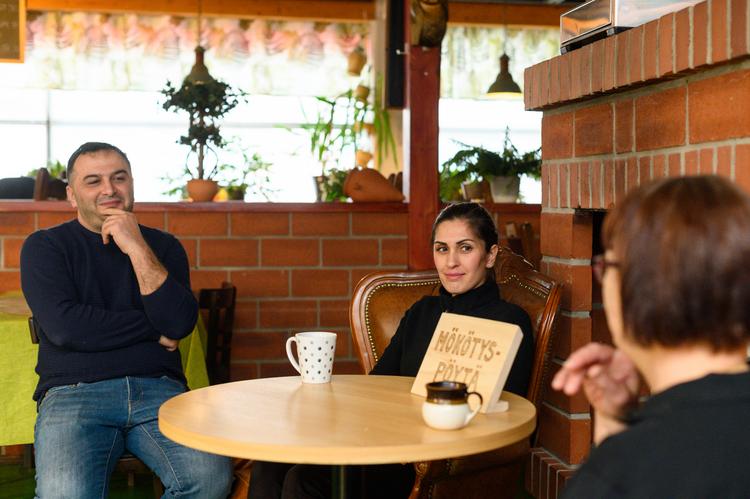 Cup-kahvilan entisellä omistajalla Päivi Tolosella ja nykyisillä omistajilla Figen Altunilla ja Mehmet Platinilla on lounasajan jälkeen hetki aikaa istahtaa kahvittelemaan. Iltapäiväkahvit juodaan mökötysnurkassa, vaikka kenelläkään ei olekaan minkäänlaista syytä mököttää.