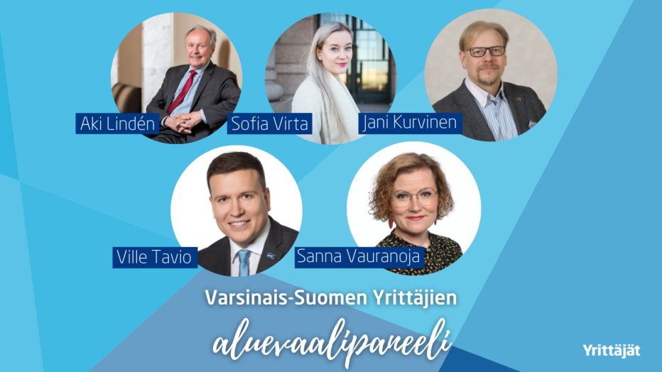Varsinais-Suomen Yrittäjät järjestivät 13.1.2022 aluevaalipaneelin varsinaissuomalaisille aluevaaliehdokkaille. Paneelin moderaattorina ja juontajana toimi Varsinais-Suomen Yrittäjien toimitusjohtaja Hanna Munter.