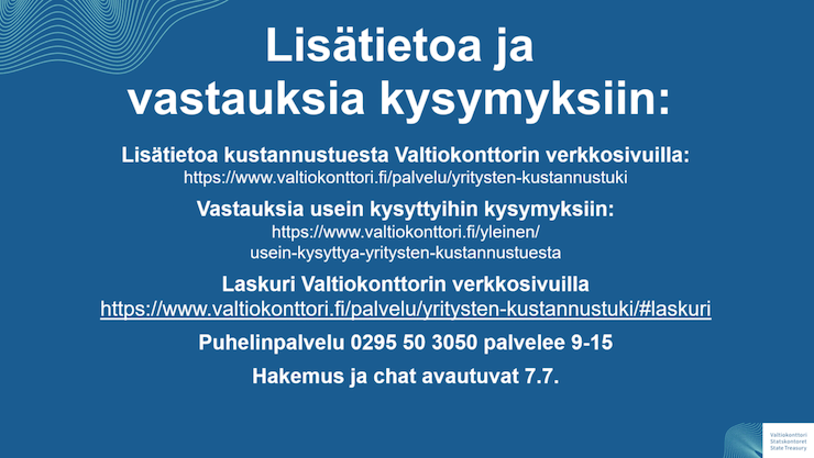 Suomen Yrittäjät järjesti webinaarin kustannustuesta 6. heinäkuuta. Tallenteen voi katsoa täältä.