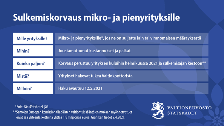 Sulkemiskorvaus pienille yrityksille