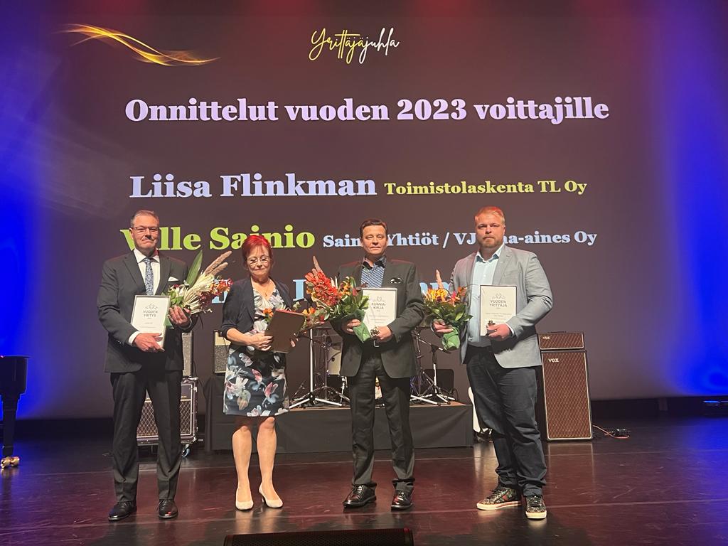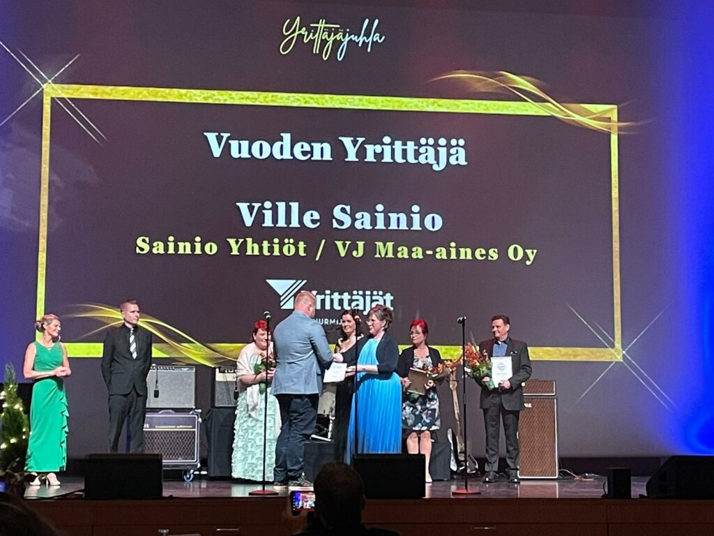 Ville Sainio vastaanotti Nurmijärven Yrittäjät ry:n Vuoden yrittäjä -palkinnon Monikossa lauantaina 14.10.2023 nurmijärveläisessä Yrittäjäjuhlassa.