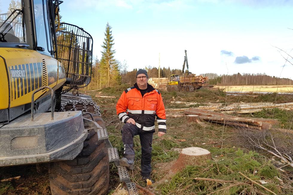 Metsäkoneyrittäjät toivovat kunnon talvea. Nyt metsänpohjat ovat niin huonossa kunnossa, että sinne ei voi raskaiden työkoneiden kanssa mennä ollenkaan.