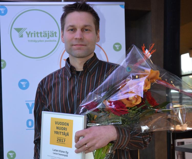 Tänä vuonna maakunnallisena nuorena yrittäjänä palkittiin 34-vuotias Lasse Saarenpää, joka aloitti yritystoiminnan jo kaksikymmentä vuotta sitten. Laten Kone Oy toimii Tuurissa ja yrityksen liikevaihto muodostuu Euroopasta maahantuotavien käytettyjen koneiden korjaustoiminnasta ja niiden kaupasta sekä uutena myytävien traktorilavettien, maanrakennuskoneiden kauhojen ja pikakiinnittimien myynnistä.