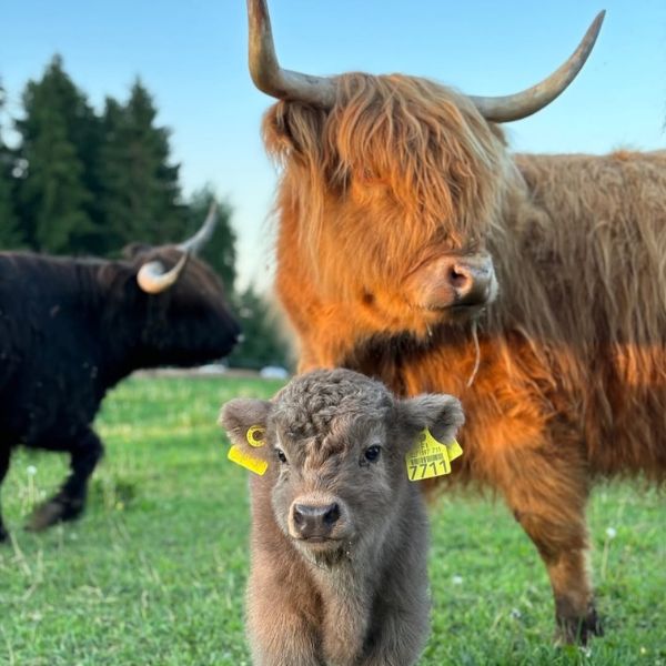 Ohelanaukeen ylämaankarja laiduntaa lähimmillään kesäterassin kupeessa tuottaen lihaa suoramyyntiin.