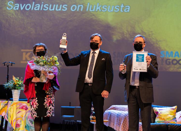 Leppävirran kunnanjohtaja Matti Raatikainen ottaa palkinnon iloisena ja kiitollisena vastaan.
