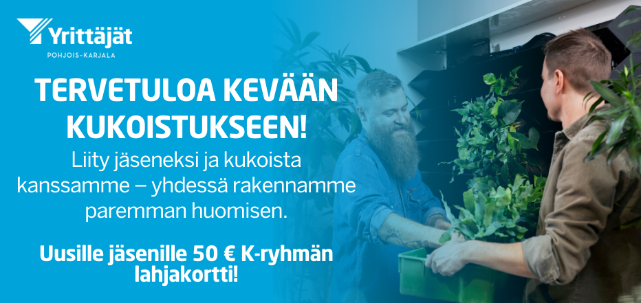 Huom! Liittymisetu koskee vain Pohjois-Karjalassa sijaitsevia yrityksiä (tai Pohjois-Karjalan alueella toimiviin paikallisyhdistyksiin liittyviä).