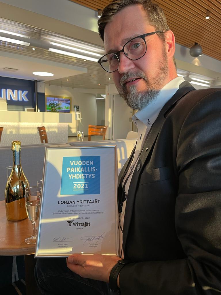 Lohjan Yrittäjät palkittiin UY:n parhaana paikallisyhdistyksenä 2021