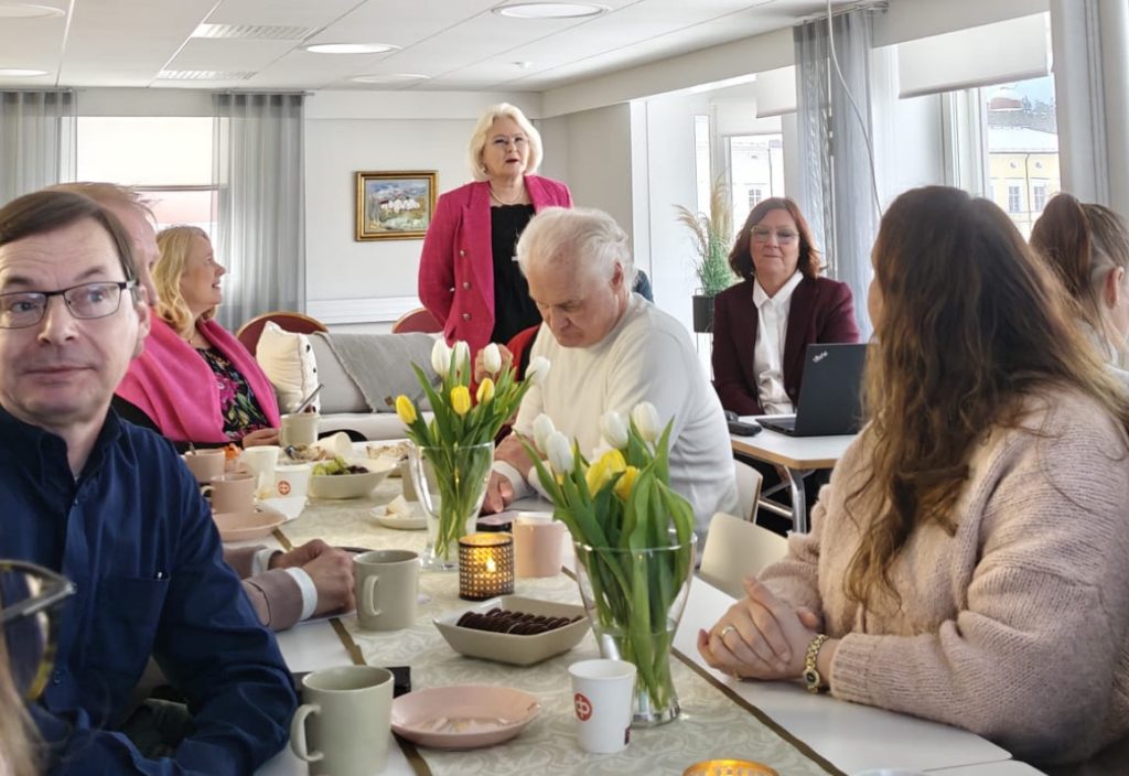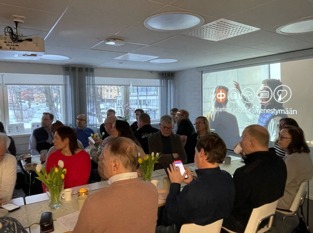 Aamukahvit keräsivät jälleen kerran kolmisenkymmentä jäsentä sekä valtuutettuja ym. paikalle. Asiapitoisten tiedotusten lisäksi aamukahvit mahdollistavat sekä verkostoitumisen mutta myös tarjoavat yrittäjille paikan tavata eri alojen yrittäjäkollegoita. Yrittäjien puheenjohtaja Andreas Ögård sivusi tulevia kunta- ja aluevaaleja, muutama yrittäjäehdokas oli paikalla, ja muistutti että vielä ehtii ilmoittautua. Yrittäjäyhdistys tukee yrittäjäehdokkaita vaalivideoinnein ja ennen vaaleja järjestetään myös vaalipaneeli puolueiden edustajille Kino Marilynissä 25.3.