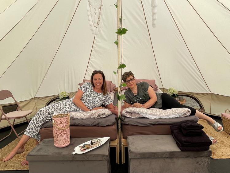 Luksusteltan suosio yllätti täysin teuvalaiset ystävykset Marjo Erlandsin ja Marjo Kiuru-Sundbergin. Heinäkuun alussa avattuun majoitukseen on tultu varta vasten satojen kilometrien päästä, ja median kiinnostus on herännyt Eurooppaa myöten.