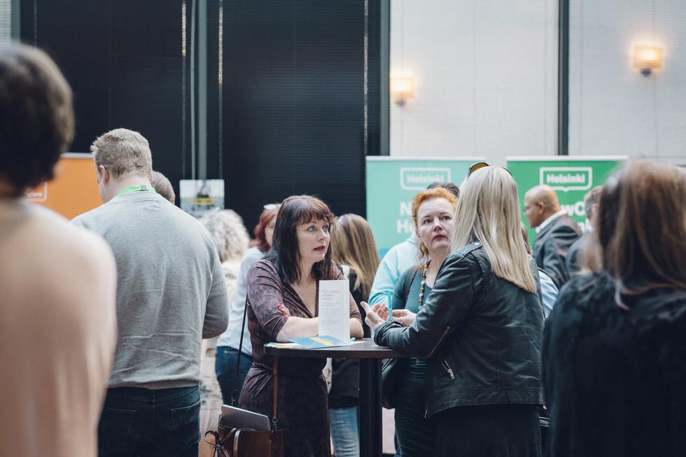 Ennen verkostoitumistaukoa koettiin yksi päivän kohokohdista: Vuoden helsinkiläinen nuori yrittäjä 2018 -palkinto. Jännitys tiivistyi yleisössä, kun Helsingin Yrittäjien nuorten yrittäjien verkoston puheenjohtaja Sanni Kaikkonen ja Helsingin Yrittäjien puheenjohtaja Mari Laaksonen kertoivat kilpailusta ja sen palkitsemiskriteereistä. Palkinnon sai tänä vuonna kolmen kaveruksen Oula Harjulan, Mikko Sonnisen ja Jaakko Pesosen perustama vastuulliseen vihersisustukseen ja kasviseiniin erikoistunut yritys InnoGreen. Suuret onnittelut vielä palkituille!
