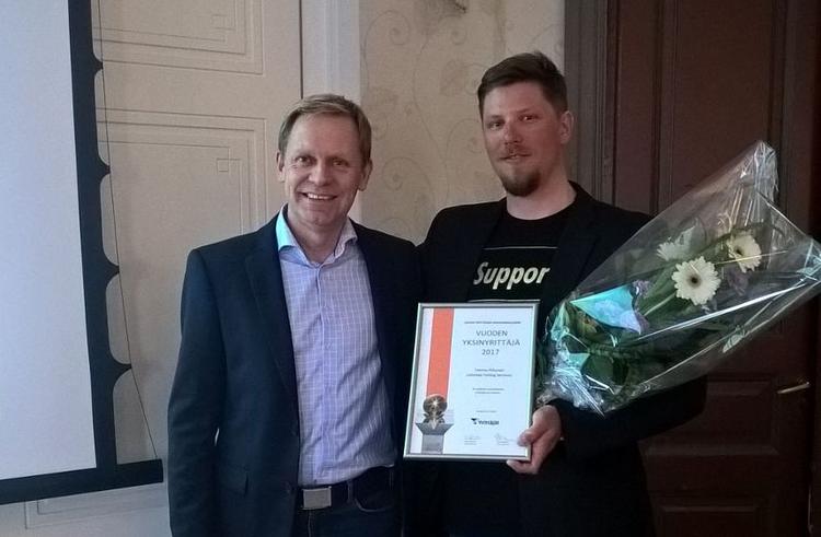 Teemu Hiltunen palkittiin Savon Yrittäjien kevätkokouksessa 31.5.2017 Kuopion klubilla.